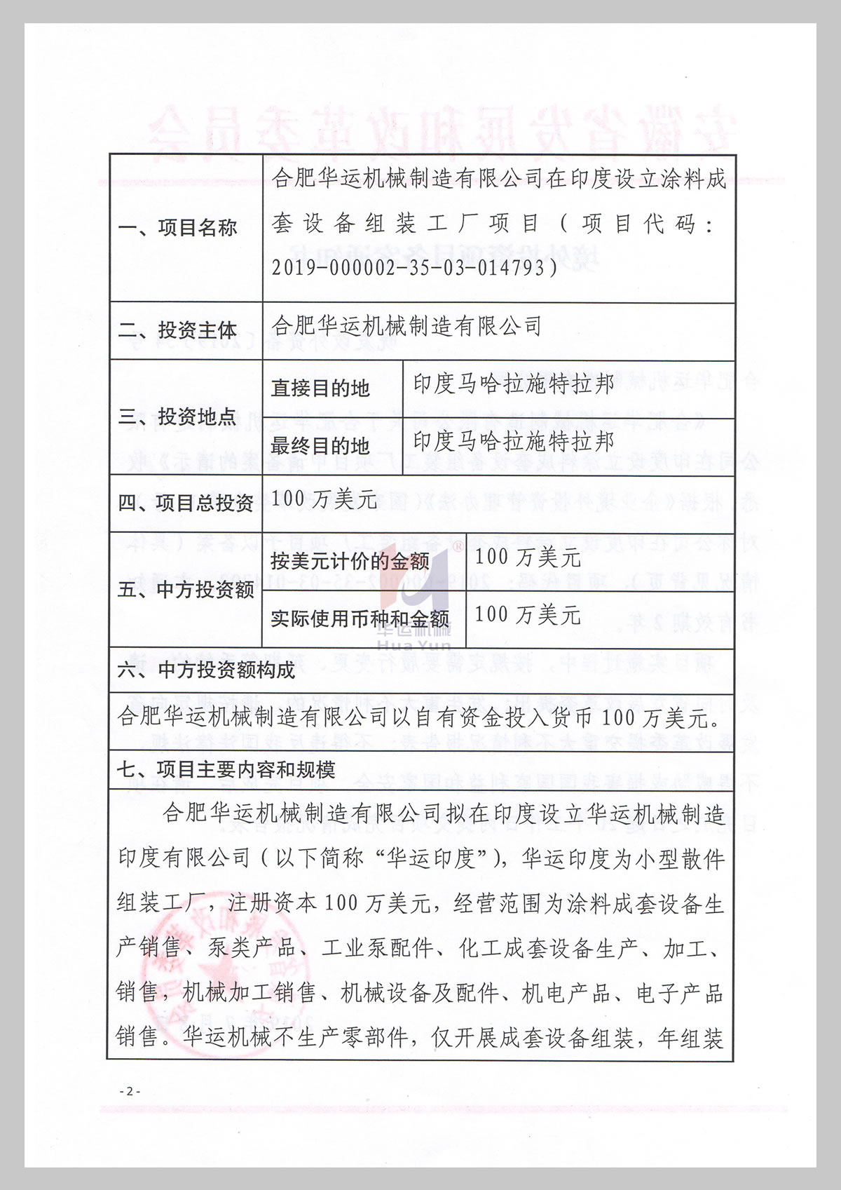 境外投資項(xiàng)目備案通知書