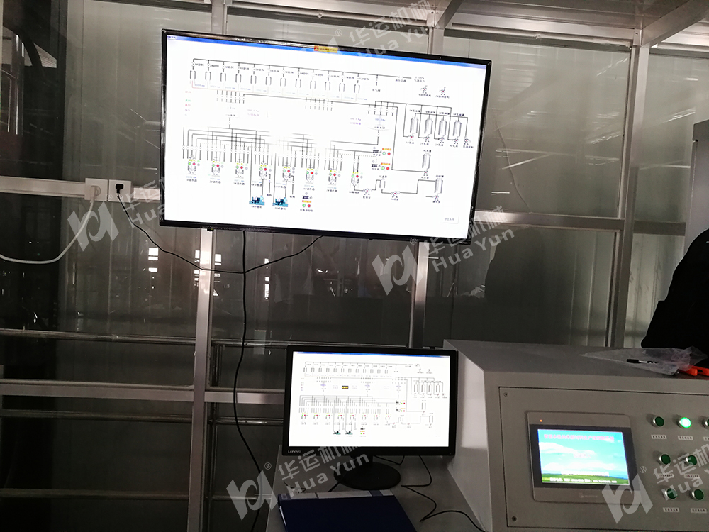 2.自動化控制系統(tǒng)由PLC,工業(yè)計算機(jī)及工業(yè)組態(tài)軟件等組成,操作臺帶模擬圖形,鼠標(biāo)點擊即可完成配方設(shè)置及助劑進(jìn)料等操作。